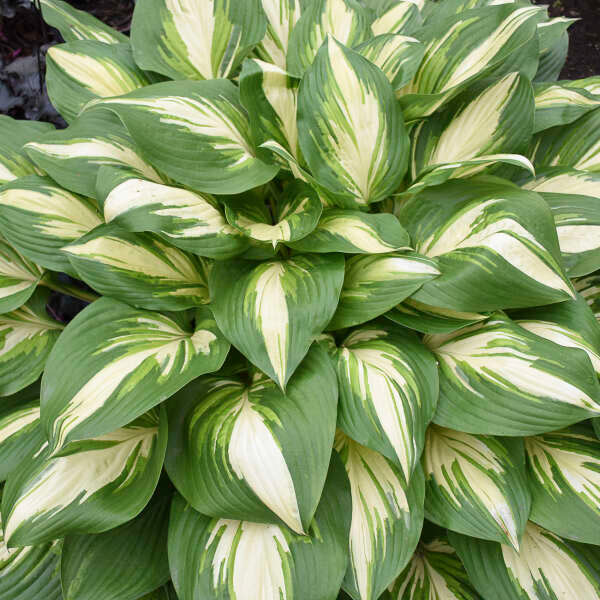 Piękna odmiana o zielonych liściach z białą plamą rozlewającą się nieregularnie i z licznymi naciekami na środku. Ogonki liściowe białe, kwiaty prawie białe na wysokich pędach. Ładnie przyrasta.