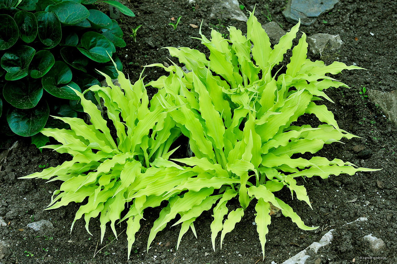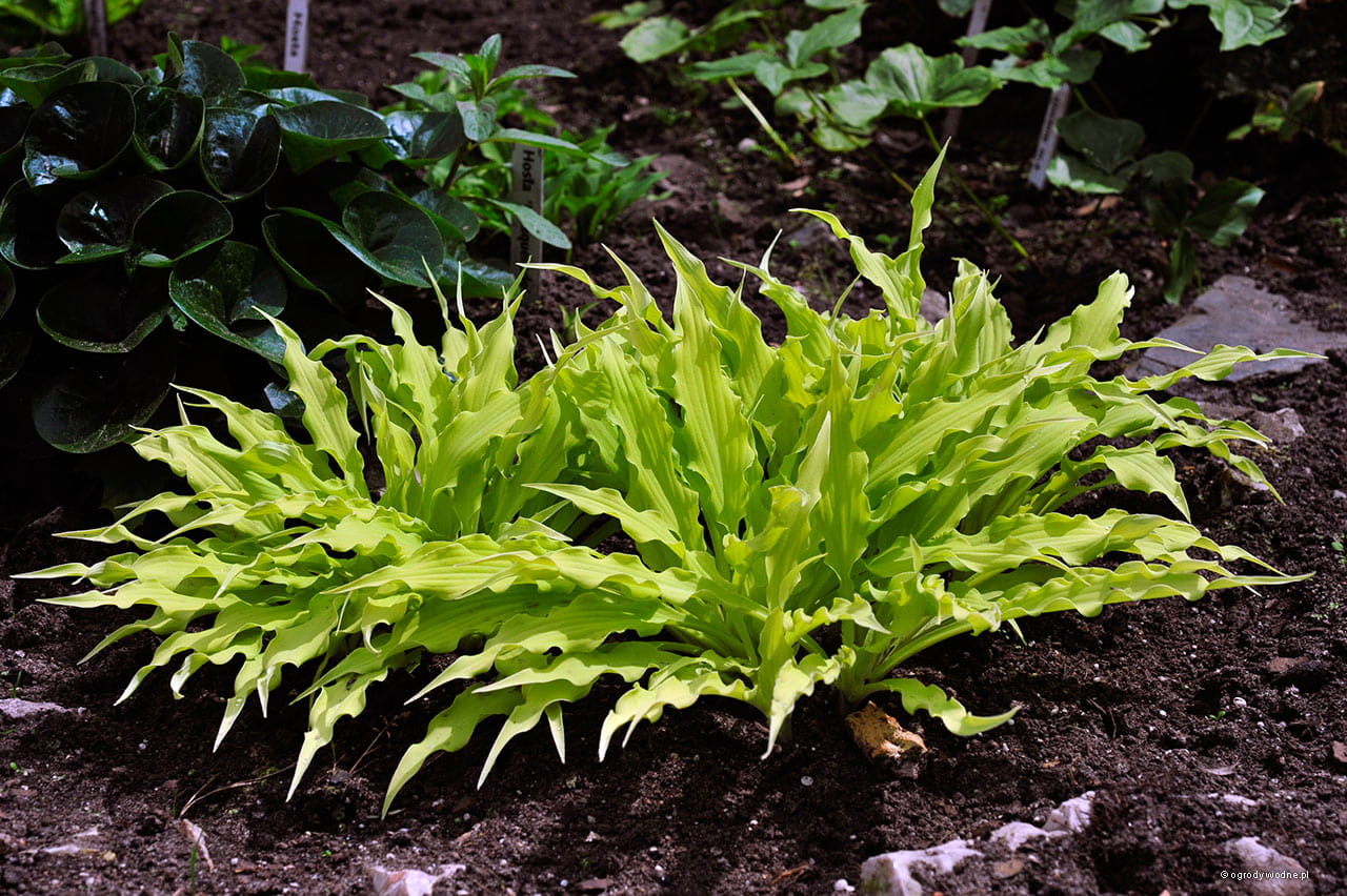 Nieduża odmiana o żółtych, lancetowatych, mocno pofałdowanych liściach - sprawia wrażenie jakby drżała. Hodowca zaleca sadzić ją na stanowisku z porannym słońcem dla lepszego wybarwienia.