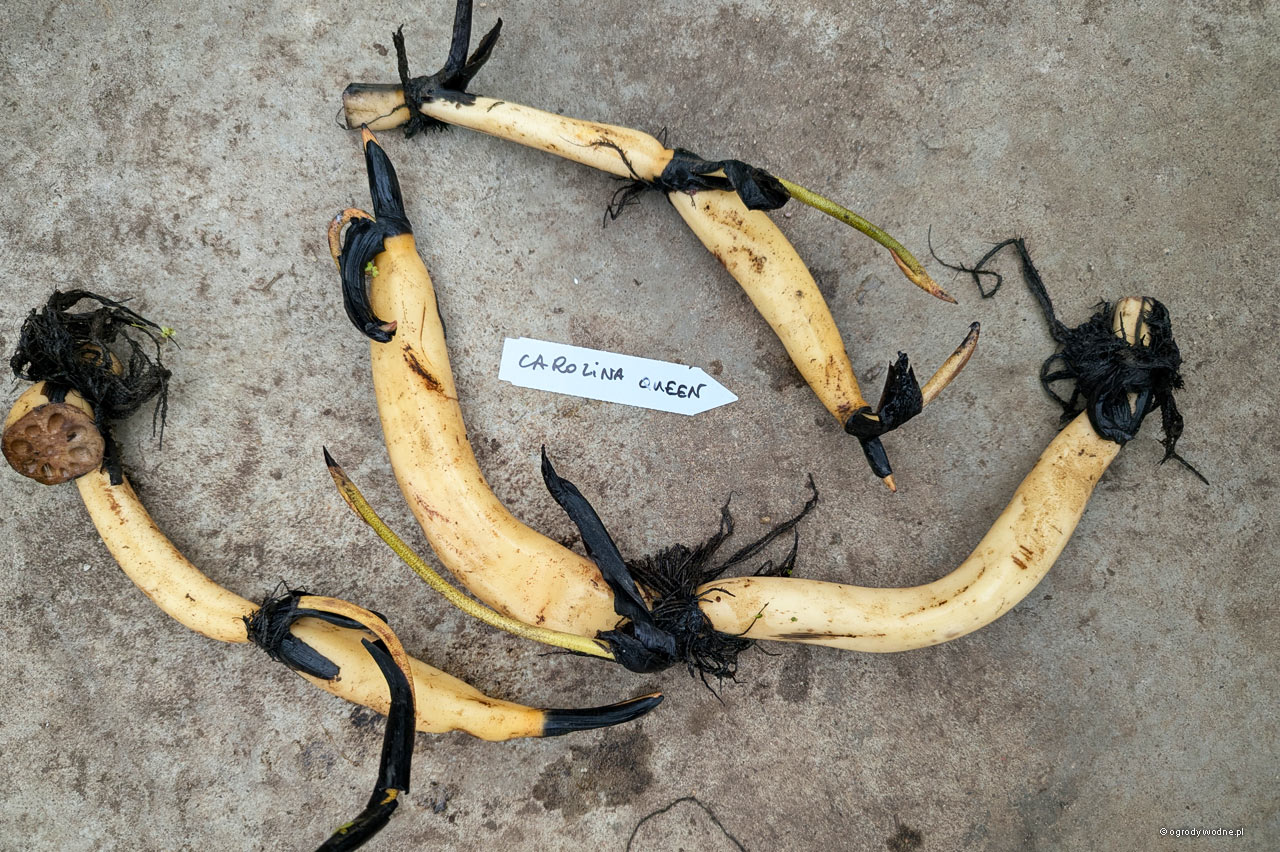 Wysyłamy kłącza lotosów, bez ziemi. Należy obchodzić się z nimi ostrożnie - kłącza są kruche i łamliwe. Po wyjęciu z paczki należy je umieścić w wodzie w ciepłym i jasnym miejscu - na sadzenie mogą poczekać nawet kilka do kilkunastu dni, można poczekać na wypuszczenie pierwszych liście. Należy jednak wysadzić natychmiast jeśli zauważy się oznaki chorób grzybowych, pleśni itp.