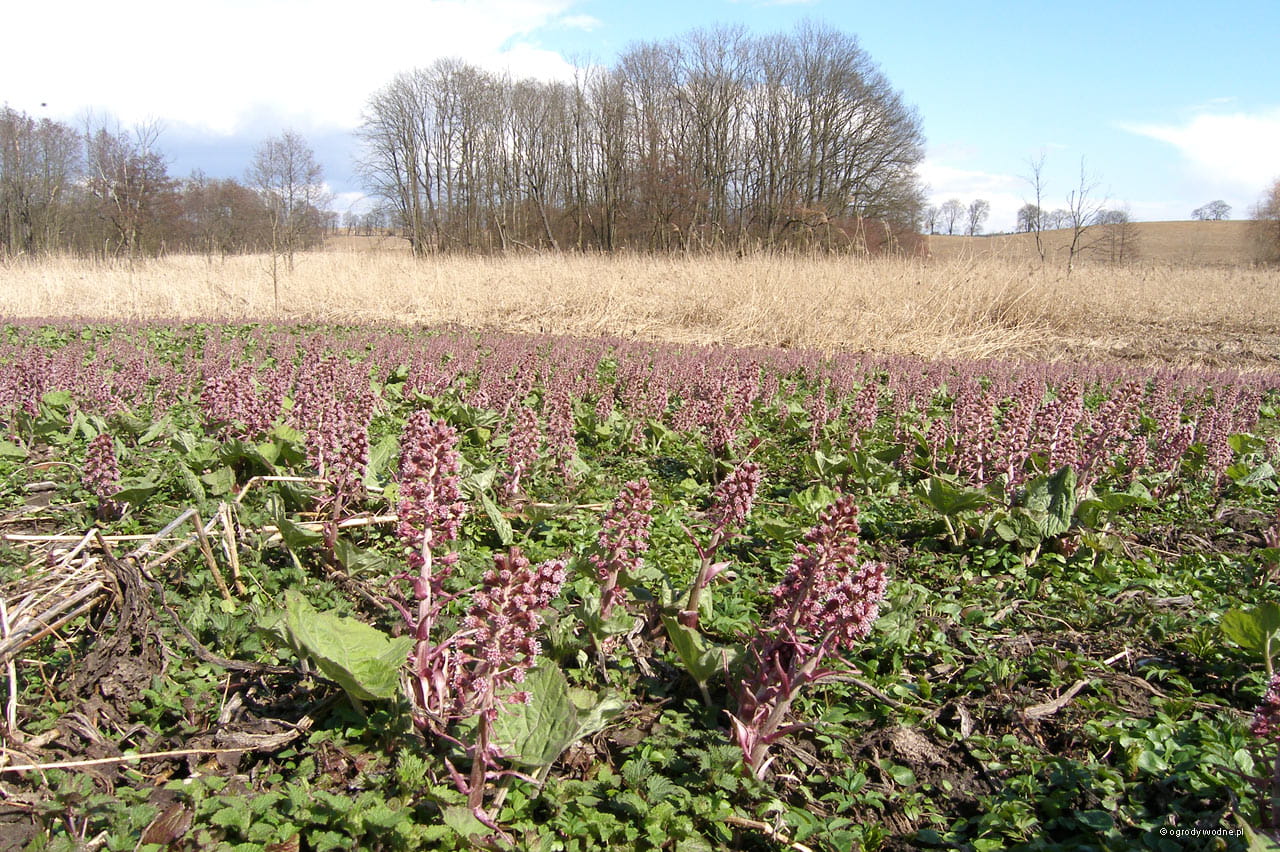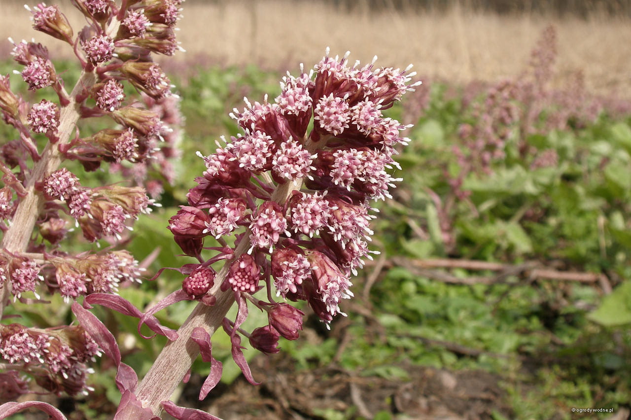 Okazała bylina o różowych kwiatach, które pokazują się już w marcu: wyrastają z gołej ziemi na grubych, mięsistych łodygach. Po kwitnieniu rozwijają się liście - bardzo duże, przypominające rabarbar. Często można go spotkać nad stawami, rzekami, strumieniami, a także na terenach zalewowych, w wilgotnych zaroślach. Lepiężnik dobrze znosi okresowe zalewania i następujące po nich okresy suszy - roślina dobrze sprawdza się w ogrodach deszczowych.
